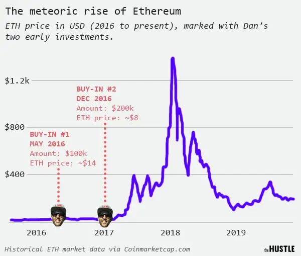 Every investor’s dream (The Hustle; historical ETH data via Coinmarketcap.com)