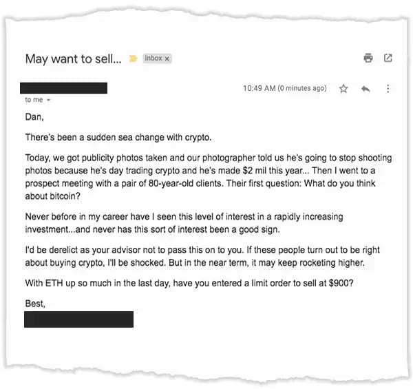 An email Dan received from his financial advisor in December 2017 (Courtesy of Dan Conway)