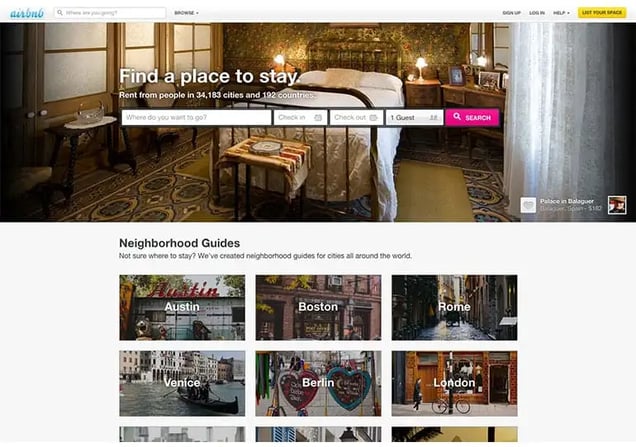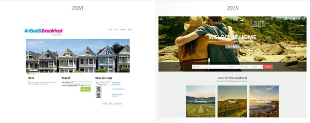 And they kept evolving. Airbnb changed to flatter colors and square shapes instead of the typical shiny and round design that was typical for web 1.0. In 2012 they overhauled the whole website. What you see today is pretty similar to their 2012 design with the addition of their 2013 logo rebrand (which Tumblr thinks looks a ladypart).