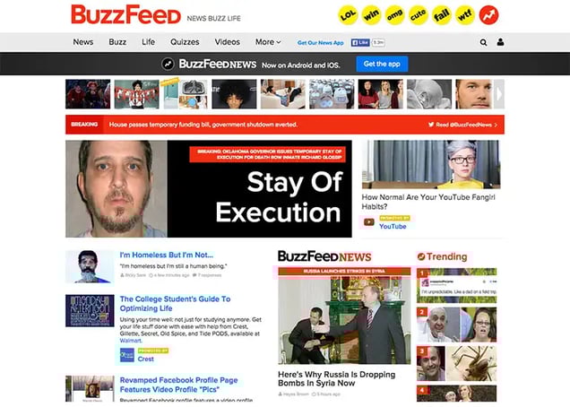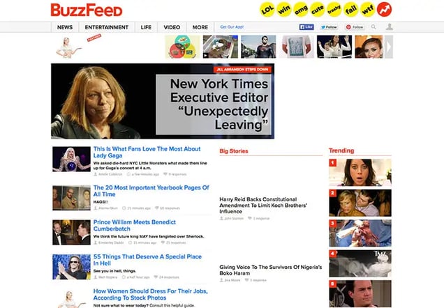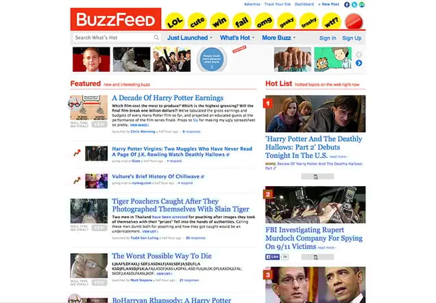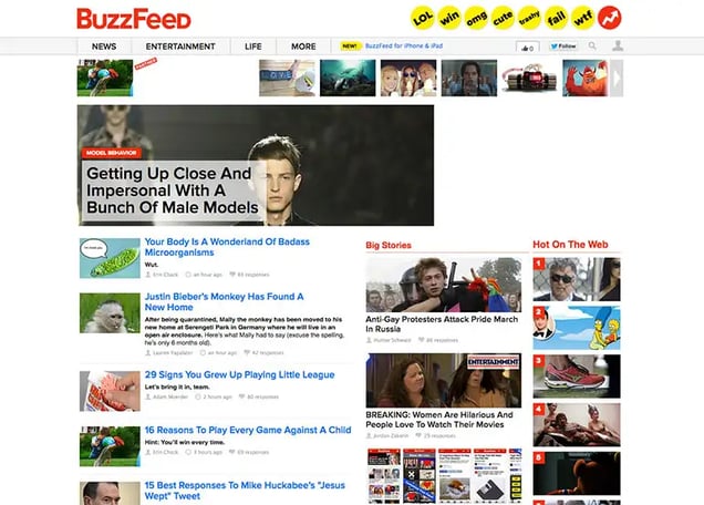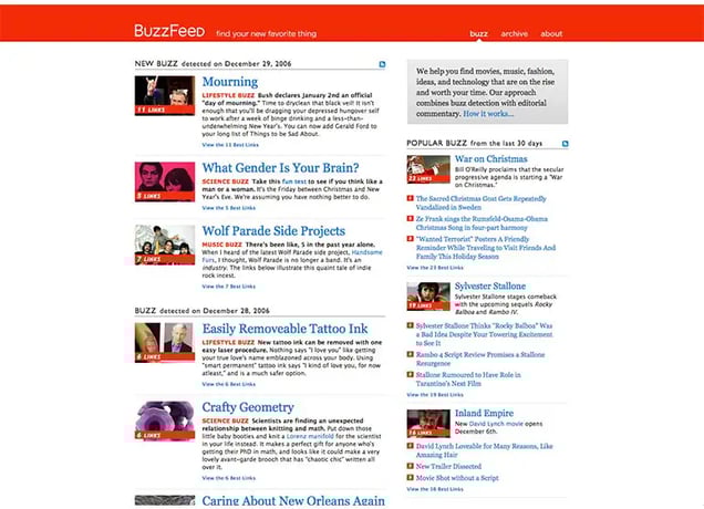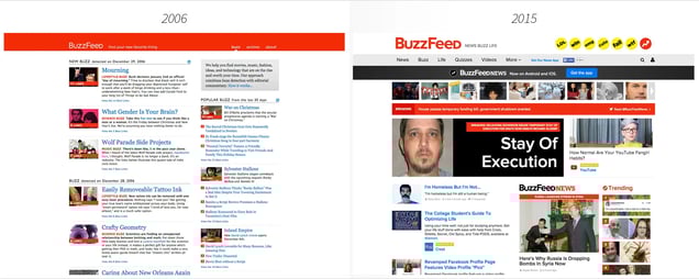 You’ll be amazed to learn that before this project, I had never been to BuzzFeed’s homepage. Look how they’ve increased their photo size over the years as well as the decreasing amount of text on the page.