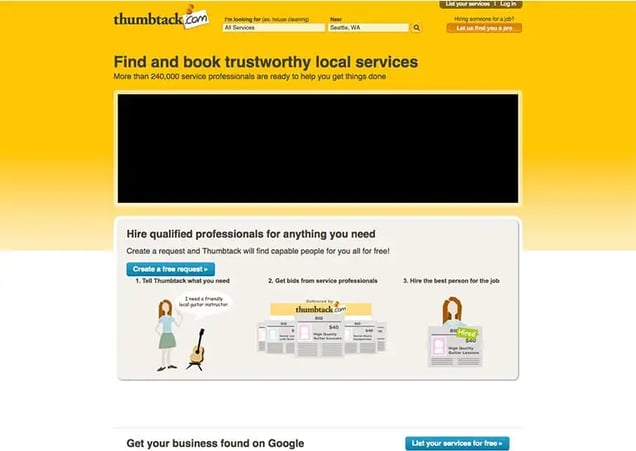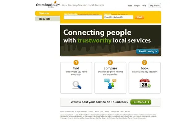 It’s likely you haven’t heard of Thumbtack, but they’re the latest addition to the billion dollar startup club, so I figure they deserve an honorable mention. Thumbtack proves that even successful companies start ugly. Really, really ugly.