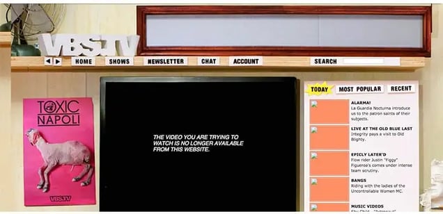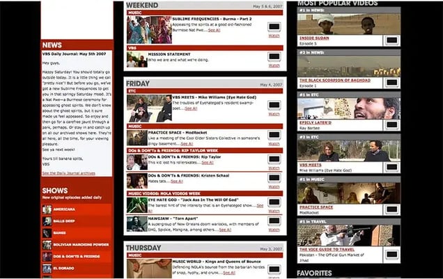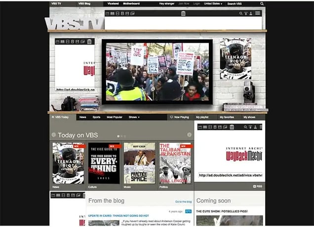 Also worth noting is screenshot of VBS.tv in 2011. Vice, unlike most media companies, ran ads very early on in their existence.
