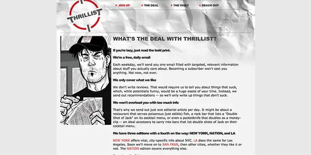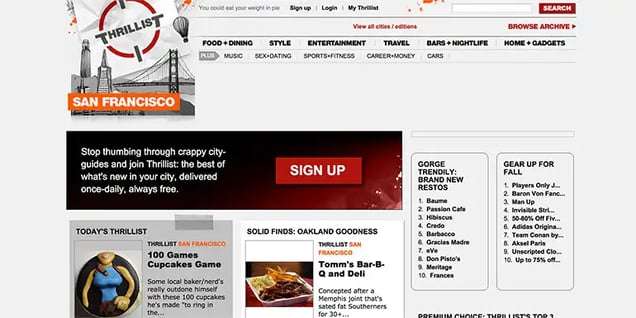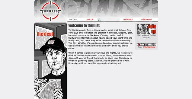 In their defence, Thrillist started as a daily email for dudes, so their website wasn’t very important. Interestingly, their first logo design (which they paid $90 for) is the same logo they use today.