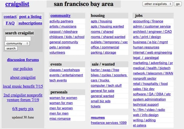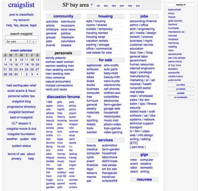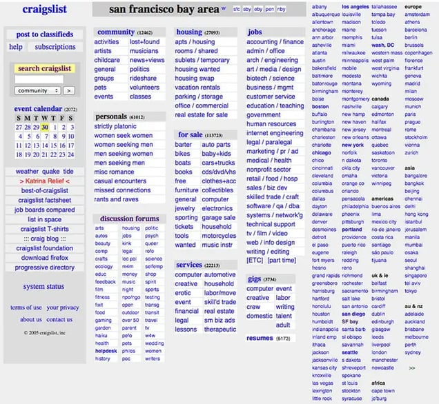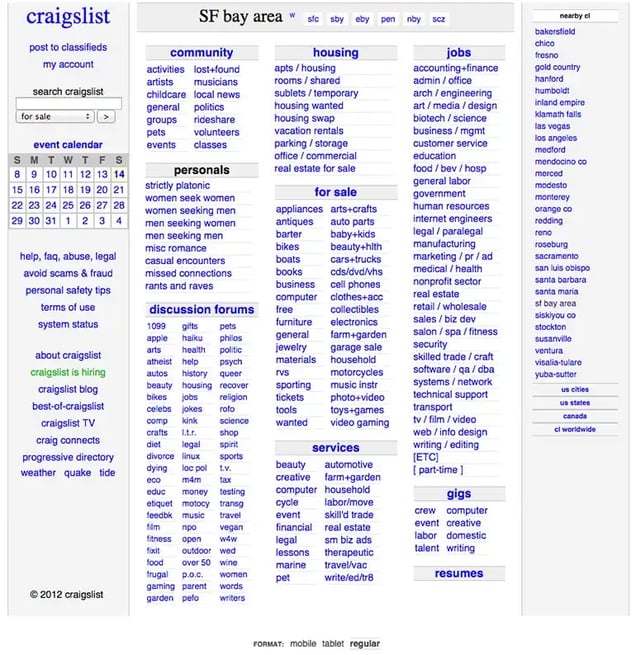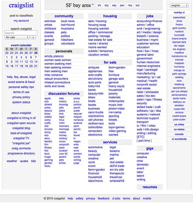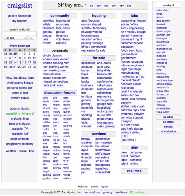 It’s an anomaly in a market that’s constantly rebranding. Craigslist.com has been virtually unchanged over the last 20 years, which I love. Craigslist receives over 50 billion page views a month and is the 9th most popular website in America. They only have 40 people on staff. Thankfully, a designer is not part of the 40.