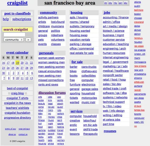 Craigslist started as an email list by Craig Newark in 1995. A year later Craigslist.com launched.