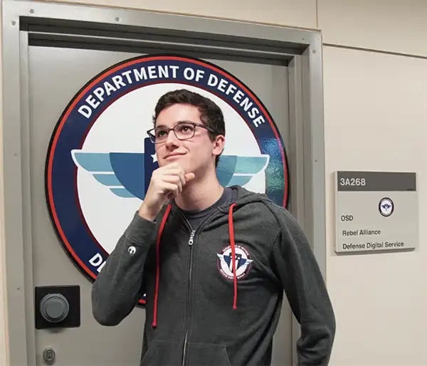 Jack Cable, who “hacked the Pentagon,” at the Department of Defense (via Twitter)